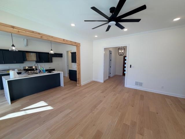 Experience the perfect blend of contemporary design and timeless warmth in this stunning, single level custom home. Built with meticulous attention to detail, this residence offers an open concept layout that is as functional as it is beautiful. The exterior makes a bold statement with a crisp white brick facade contrasted by sleek black trim and modern glass-paneled entry door. The soaring gables and natural wood porch accents provide a warm, organic touch that hints luxury found within. As step through the hallway, you will take notice of an illuminated striking geometric chandelier into the heart of the home. It doesn't stop there. The kitchen is a showstopper. it features custom cabinetry, massive natural wood cased opening frames the kitchen and dining area. Uncompromising Quality. No details have been overlooked. Pella Window, Designer Flooring wide plank European oak style flooring seamlessly through the main living areas. This isn't just a house, it's a masterclass.